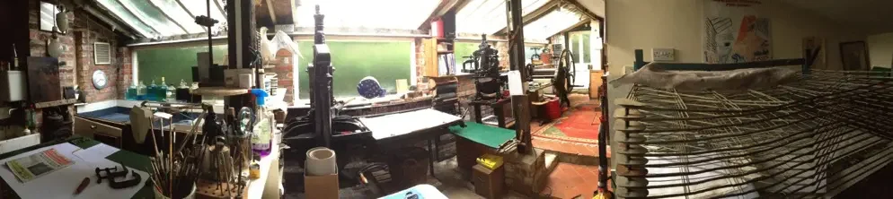 Bracken Press is the 'private press' imprint name for the printmaker Michael Atkin, who works in three different mediums, Etching, Lino printing and Wood engraving. Michael’s collection includes an Albion Press (1869) and a Rochat Etching Press. Apart from making prints, Michael also runs various printmaking courses.