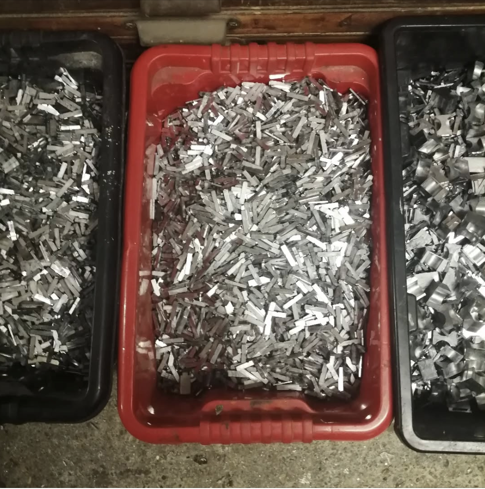Furnival 20" Guillotine The Furnival Guillotine in our workshop. It has been thoroughly cleaned oiled and greased and the mechanism slides beautifully. It has been treated to a new wooden handle turned by our neighbours Nichols Bros (Wood Turners) Ltd. Unfortunately over the last 100 years, the blade had been sharpened so much such that it didn’t quite hit the cutting stick any more, so we had Mastercut Cutting Systems Ltd make us two shiny new (and sharp) blades—no more need for mill board under the blade!